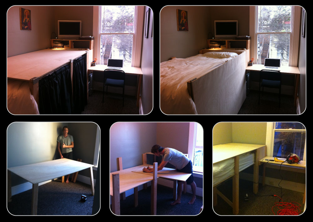 Designed folding bed & desk with help from George Morrow & Ross Ulbricht.